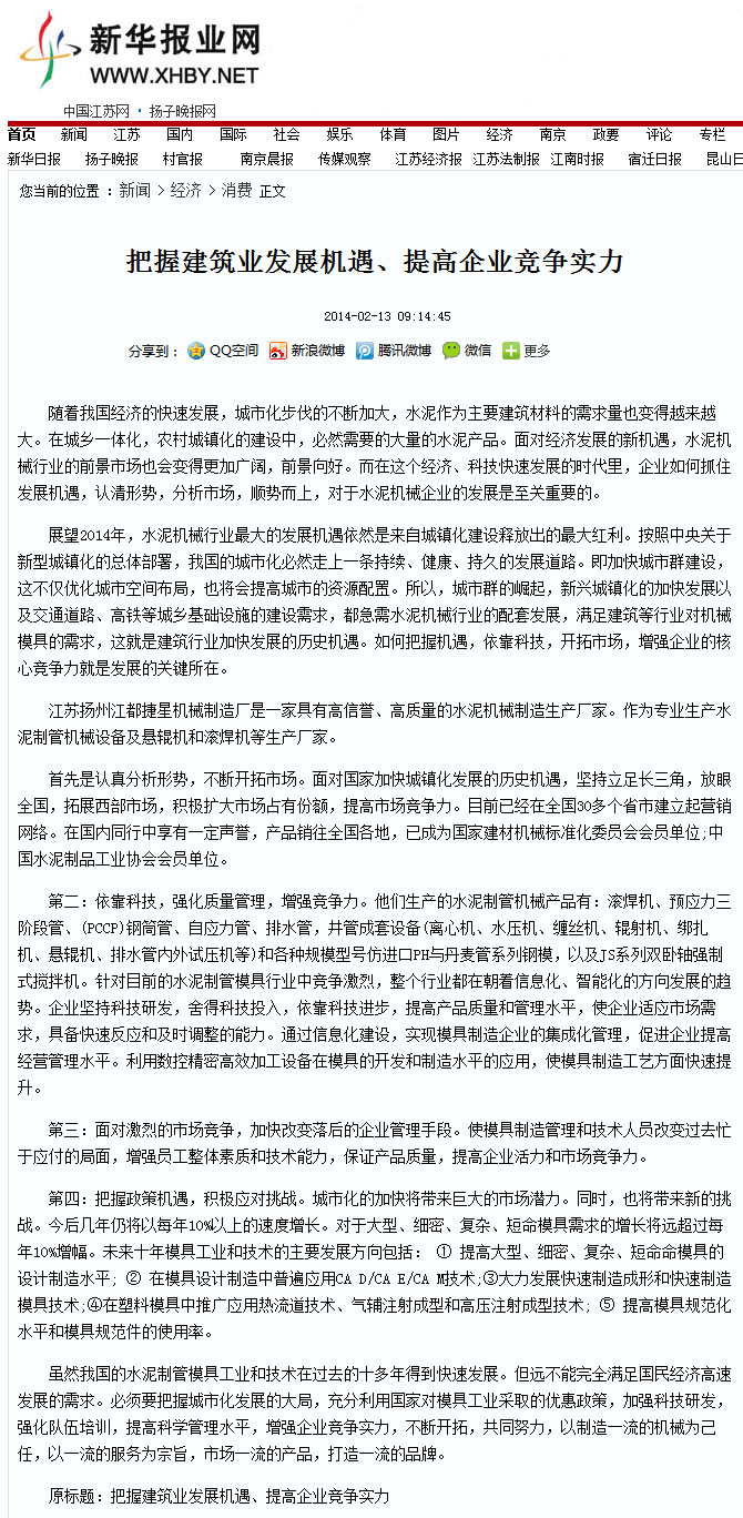 江苏第一大网络媒体新华报业网报道芯模振动模