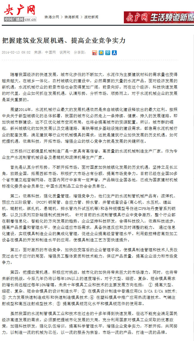 新浪网对江都芯模振动模具的专题报道