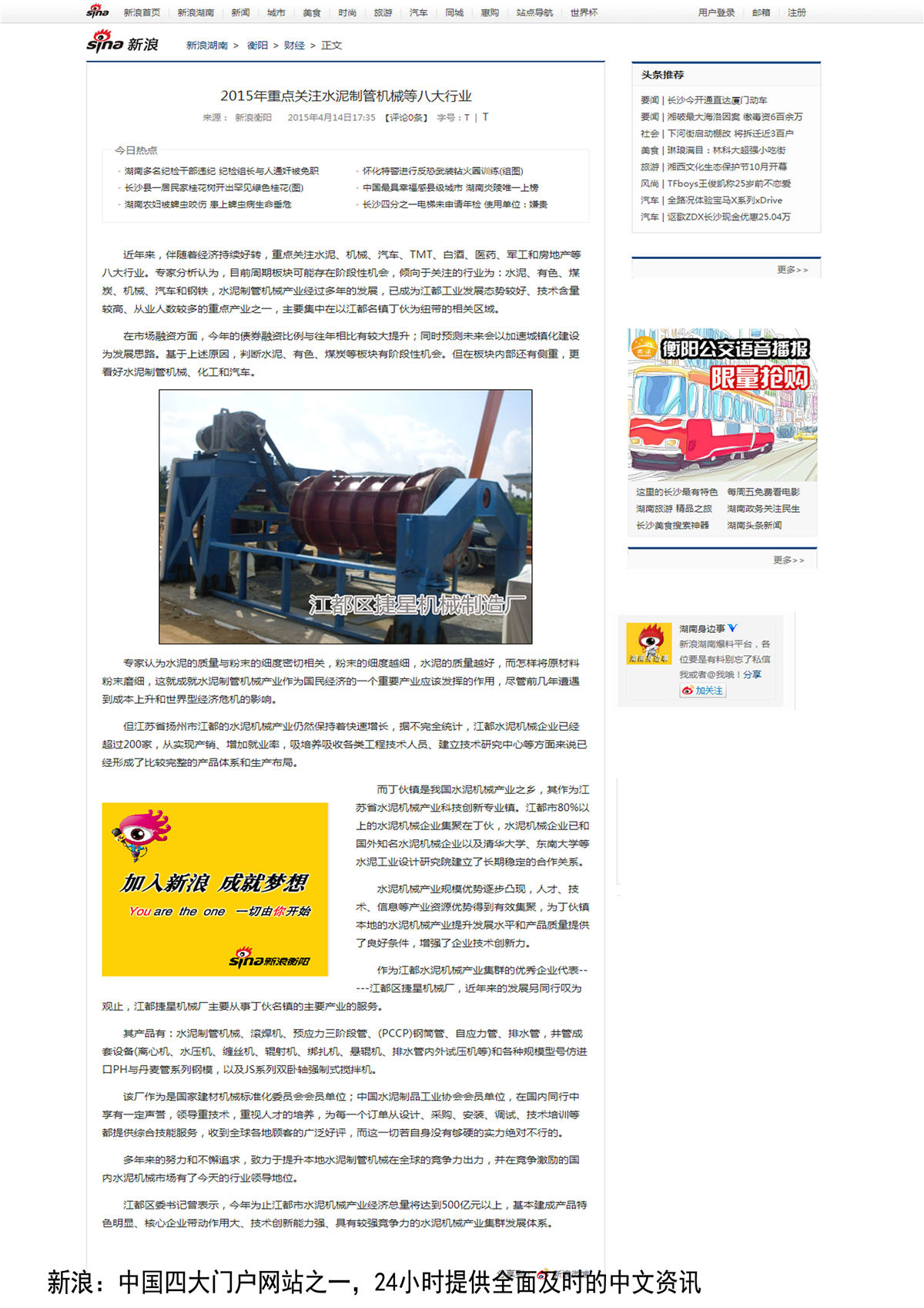新浪网对江都芯模振动模具的专题报道